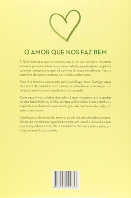 Com linguagem clara, Joan Garriga aponta aquilo que normalmente funciona ou estraga um relacionamento, mostrando os elementos que facilitam ou dificultam a construção de uma boa relação saudável. Mais do que fórmulas prontas, o autor fornece pistas para que cada um possa encontrar o modo mais apropriado de resgatar e melhorar sua vida conjugal. “O que temos são boas e más relações: relações que nos enriquecem e nos empobrecem”. Precisamos do amor que nos faz bem.